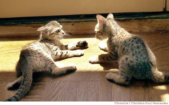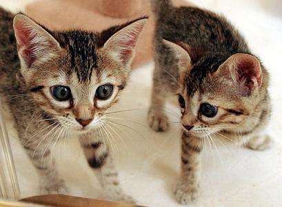 Kittens Tabouli and Baba Ganoush, both cloned from the same Bengal cat. They are the first cats cloned using the new technique known as chromatin transfer.