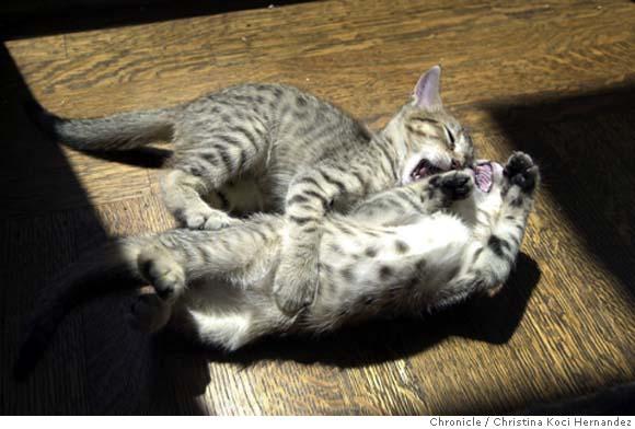Tahini, the Bengal cat who is the genetic donor for clones Tabouli and Baba Ganoush. Bengals are specially bred crosses of Asian leopard cats and domestic cats.